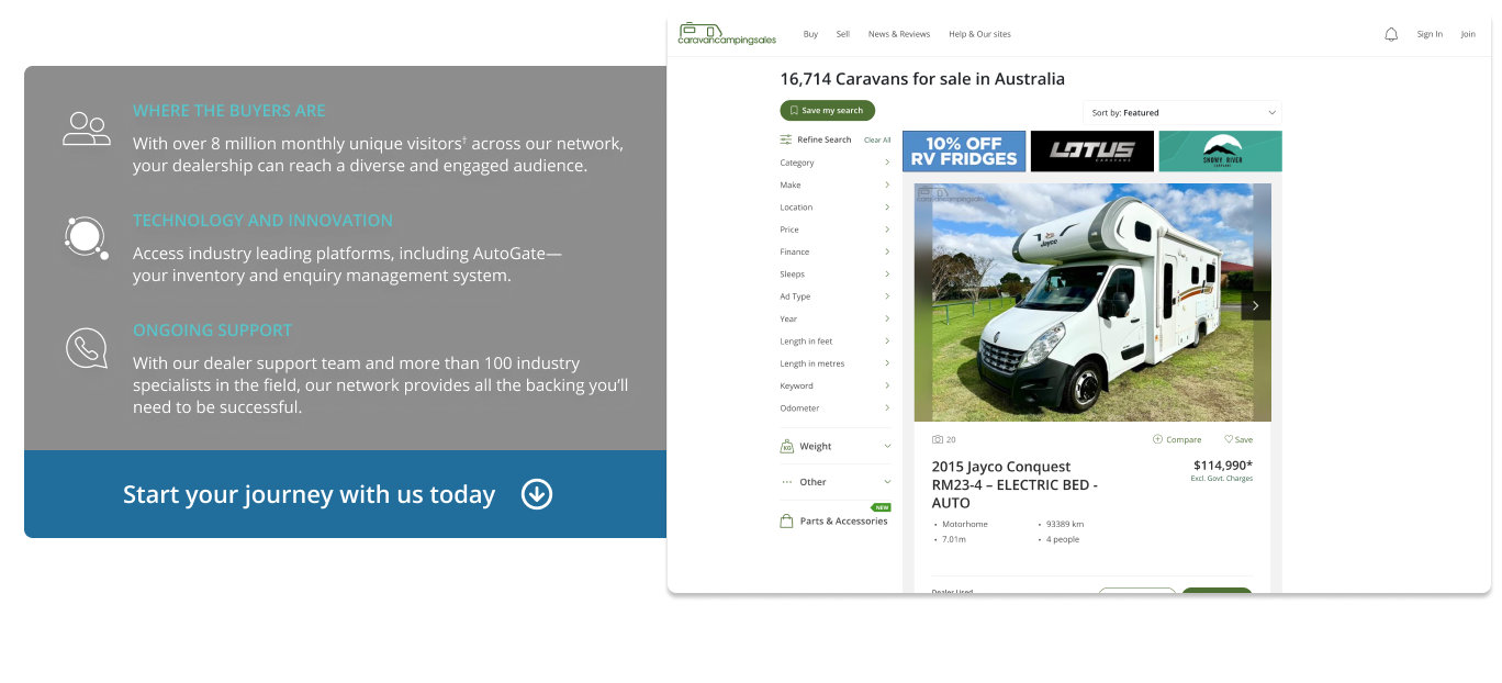 By partnering with us, you’ll discover that we’re more than just Australia’s number one network of mobility marketplaces. We provide everything you’ll need to be successful.