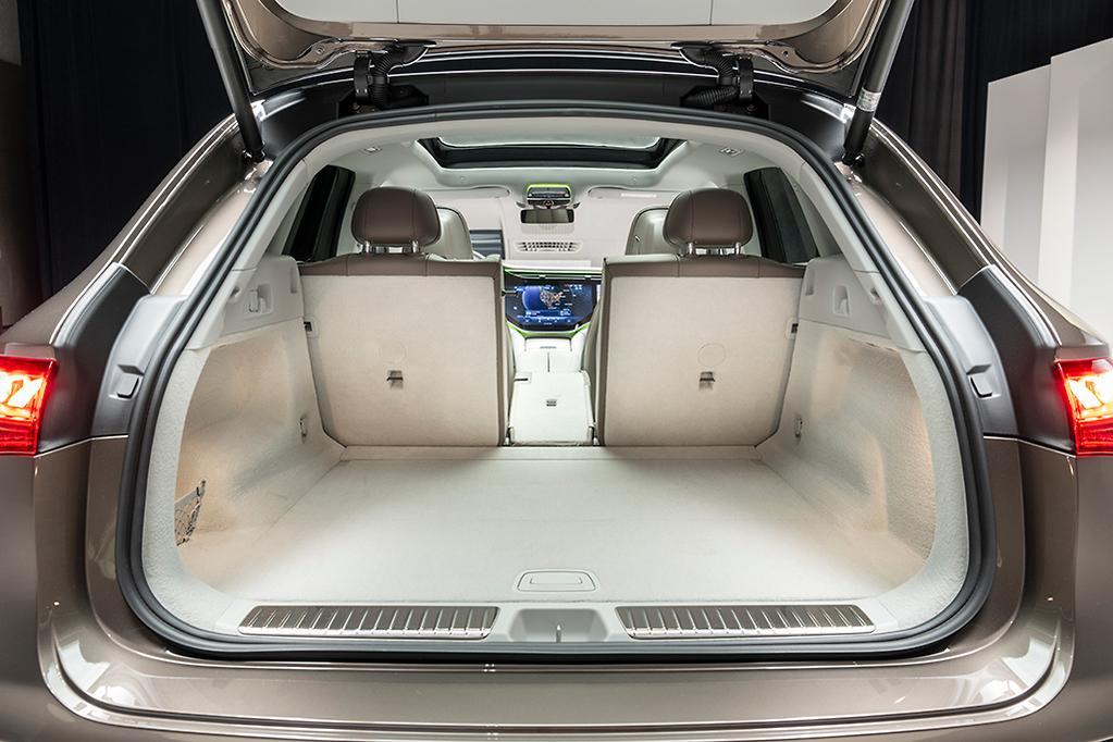 The cockpit, front seats and 40:20:40-split folding rear bench are all but identical to those in the EQS.
